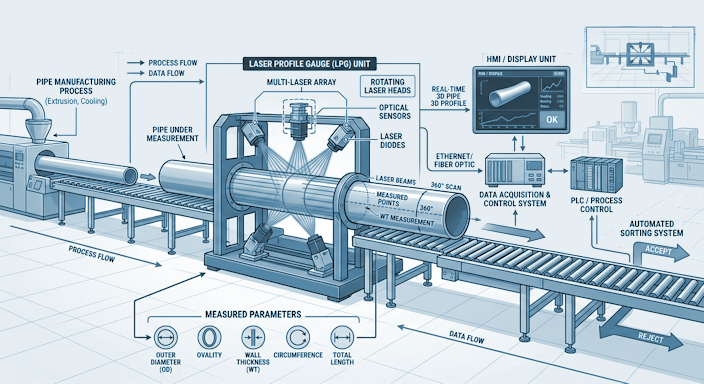 To combat this, manufacturers require a system that captures the full 360° contour of the pipe—something a single-plane laser micrometer cannot do if the pipe is vibrating or rotating.