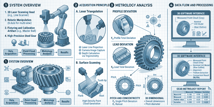 A gear is not a simple cylinder. Its defining features—involute tooth profiles, root fillets, tip lands, and spacing around the circumference—are three-dimensional, repetitive, and demanding. Traditional inspection methods fall into two camps: