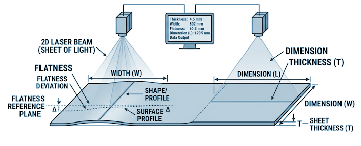 In the world of sheet and strip processing, width tells you how much material you have. But flatness tells you if that material is worth using. A coil that is perfectly wide but riddled with wavy edges, center buckles, or loose panels is a recipe for rejects, jams, and downstream processing headaches. For hot and cold mill applications, measuring flatness accurately in real-time has historically been complex and costly. That has changed with the arrival of the 2D laser scanner-based flatness measurement system. Moving beyond contact rolls and mechanical sensors, this non-contact optical system provides a comprehensive, high-speed map of the strip’s surface profile—instantly, continuously, and with extreme precision, even in the brutal environment of the rolling mill.